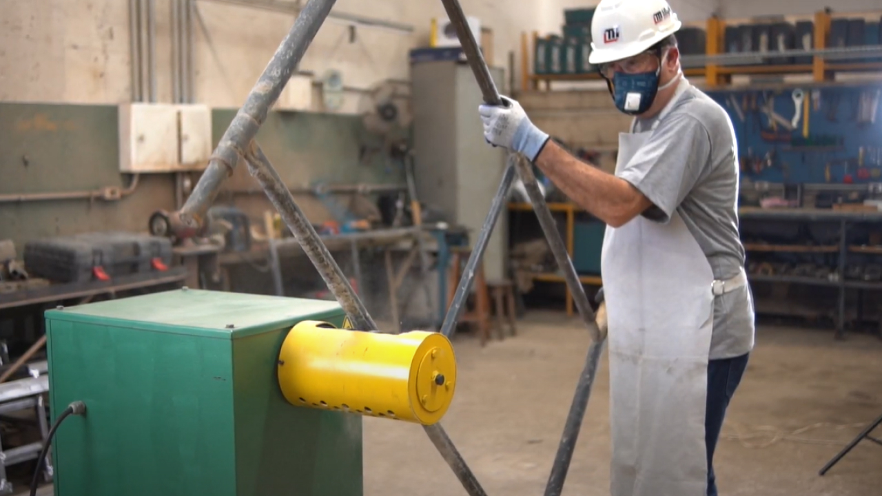 Um máquina que limpa andaimes em poucos minutos, sem barulho e sem prejudicar o meio ambiente.